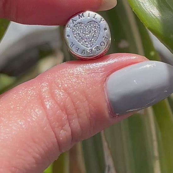 Charms pasante “family forever” doble corazón dé circonia